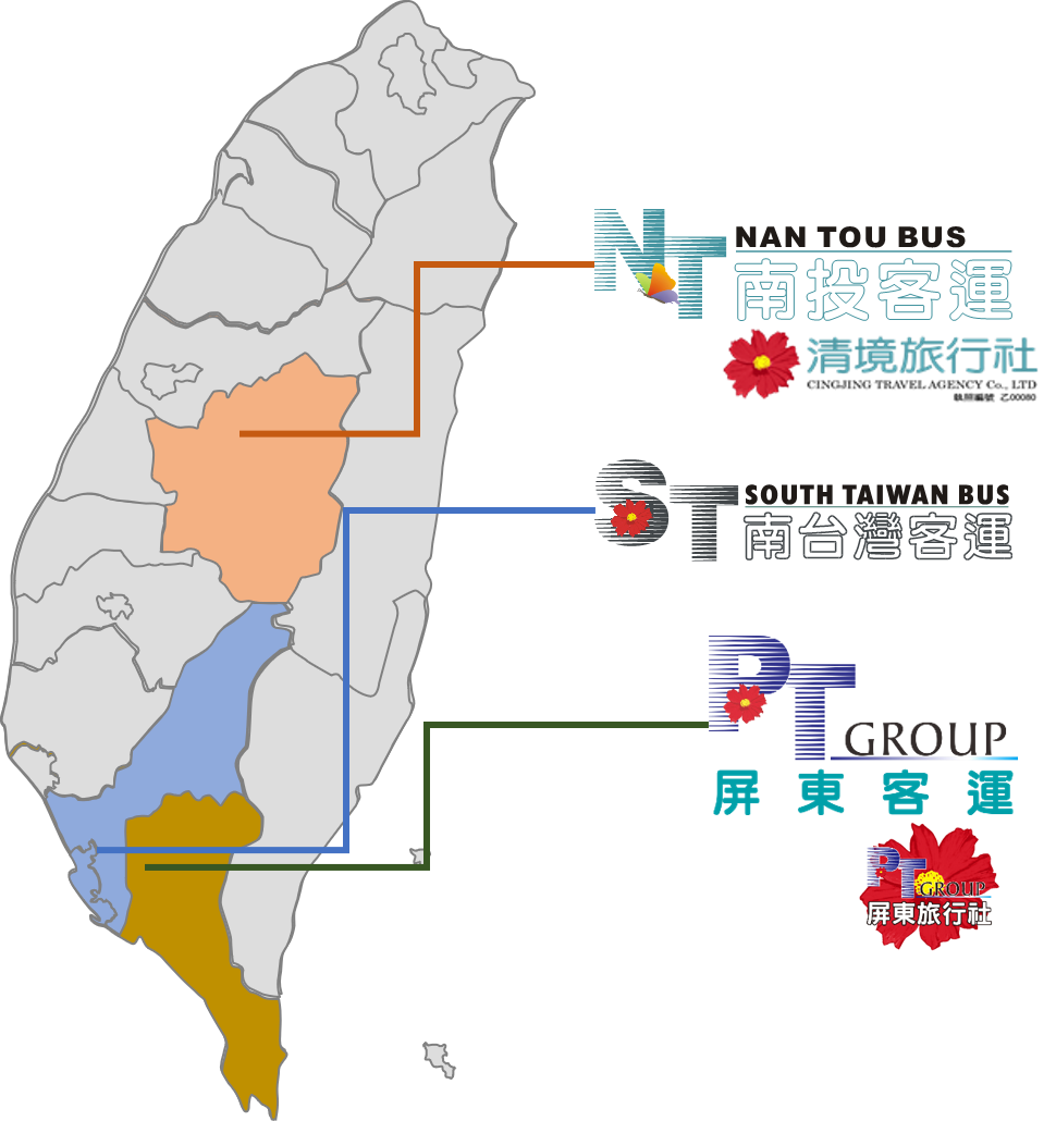 屏東客運(yùn)集團(tuán)主要營(yíng)運(yùn)範(fàn)圍在中部(南投)、南部(高雄以及屏東)。