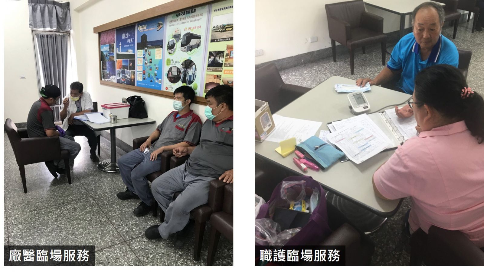 本公司每年皆會(huì)辦理員工體檢,除了基本檢查項(xiàng)目以外,為了保障駕駛員身體狀況以利行車安全,更增加了心電圖、超音波等項(xiàng)目。本公司自109年1月1日起依職業(yè)安全衛(wèi)生法第22條及勞工健康保護(hù)規(guī)則第4條規(guī)定,特約廠醫(yī)、職護(hù)各一名,每次臨場(chǎng)服務(wù)時(shí)間至少2小時(shí)以上。針對(duì)具有三高(高血壓、高血糖、高血脂)的員工,本公司會(huì)特別通知臨場(chǎng)服務(wù)時(shí)間,以維護(hù)員工身體狀況。